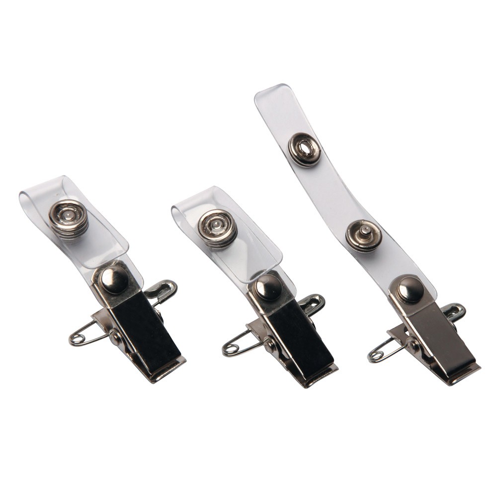 Klipsy z paskiem do identyfikatora. Waga netto: 0,587 kg Waga brutto: 0,600 kg Wymiary opakowania (W x S x G): 60 x 180 x 140 mm Opakowanie zawiera 100 szt.* *towar sprzedaje się tylko w pełnych opakowaniach